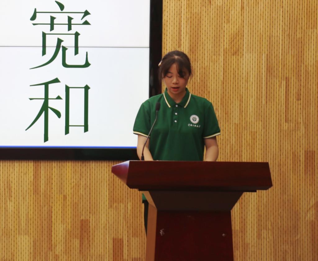 本科新生代表王培柳表达了成功录取365官网的喜悦和对大学生活的憧憬,她表示在今后的学习生活中将明确学业规划,严于律己,脚踏实地,不断充实自身,成为一名有理想、有道德、有文化、有纪律的全面发展的文传人。