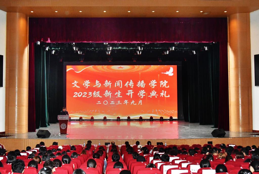 最后,学院党委副书记牛磊寄语全体新生,唯有付出才有收获,希望2023级全体同学能在民大这片蓝天下放飞属于自己的理想,在文传学院这个温暖的大家庭中收获友谊、斩获未来。