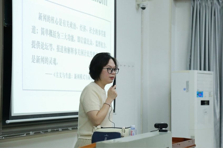 本站讯(通讯员白锡琳摄影陆远琦)近日,我院田园子老师2023年度校级“课程思政”示范课程《新闻采写》顺利开展,院新闻党支部高度重视这一课程,深入挖掘课程所蕴含的思政元素。院长陶喜红、院党委副书记牛磊、副院长陈峻俊、我院青年教师、2022级新闻学学生参与本次课程。